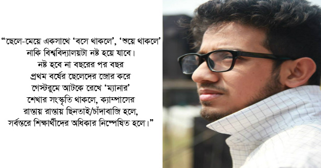 সেক্সুয়াল ডিপ্রাইভেশনের জায়গা থেকে অনেকেই সস্তা আর চটকদার জিনিসে মজা পায়। অনেক সাংবাদিকও পায়। রাত একটায় টিএসসির কক্ষে কোন ছেলে-কোন মেয়ে বসেছিলো? ‘‘তারা শুধু বসে ছিলো নাকি অন্যকিছু করছিলো” -এর চেয়ে বহু গুরুত্বপূর্ণ বিষয় এই বিশ্ববিদ্যালয়ে প্রতিদিন ঘটছে, যা