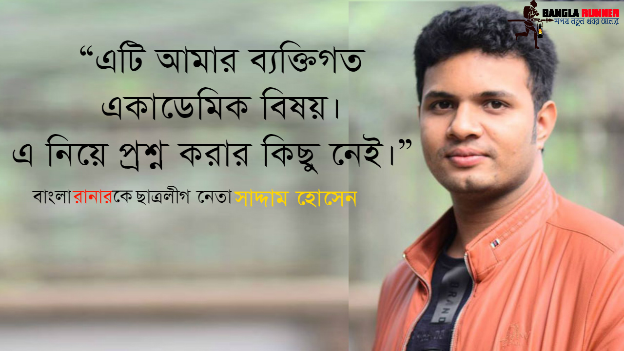 চার বছরের অনার্স কোর্স সাত বছরেও পাশ করতে না পারা নিয়ে নিজের মন্তব্য জানিয়েছেন ডাকসুর এজিএস ও ঢাকা বিশ্ববিদ্যালয় ছাত্রলীগের সাধারণ সম্পাদক সাদ্দাম হোসেন। ৩০ মে, বৃহস্পতিবার দিবাগত রাতে বাংলা রানারকে সাদ্দাম হোসেন বলেছেন, “এটি আমার ব্যক্তিগত একাডেমিক বিষয়।